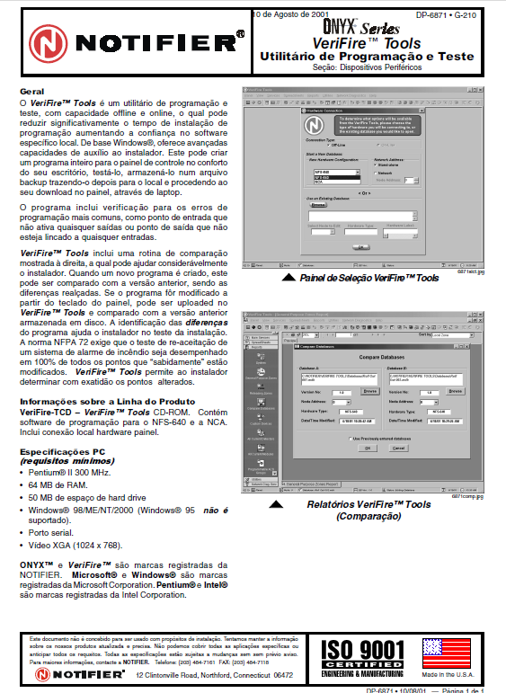 O NWS se comunica com a NOTI•FIRE•NET™ versão 5.0 e superior. A interface do NWS à Internet/intranet é feita por uma conexão Ethernet baseada em IP, com fio. Use a Ferramenta de Configuração Serial para fazer as definições de configuração de rede que permitem que o servidor de rede se comunique com o browser.